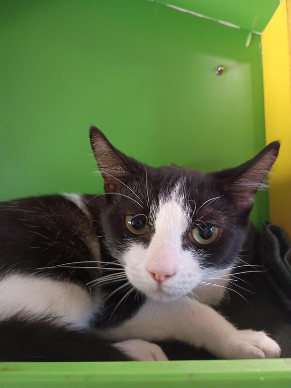 Hi, I'm Zeus, a young cat with a heart full of love. I might be shy at first, but give me a little time, and I'll show you how loyal and funny I can be. I love solving puzzles, especially if they lead to treats! My days are filled with quiet observations and gentle play. I dream of a home where I can share my affection and quirky humor. If you're looking for a smart companion who will always be there to cheer you up, I'm your cat. Let's make each other's life a bit brighter!