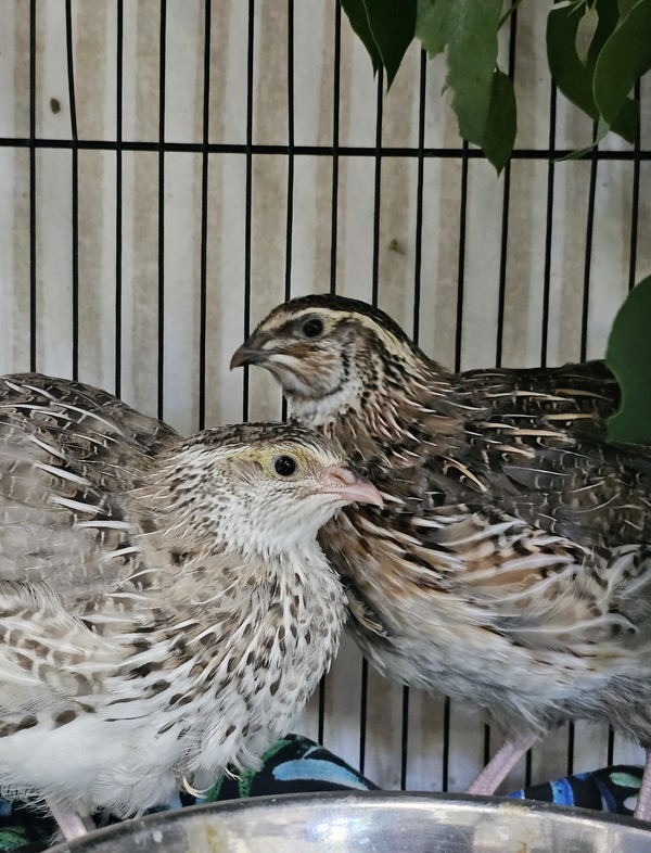Japanese quail may be small, but don't let their size fool you - they can jump surprisingly high when startled. Because of this, Romeo and Juliet will need a fully enclosed predator-proof pen to keep them safe. A secure run with plenty of ground space, hiding spots, and soft bedding will help them feel comfortable and confident.