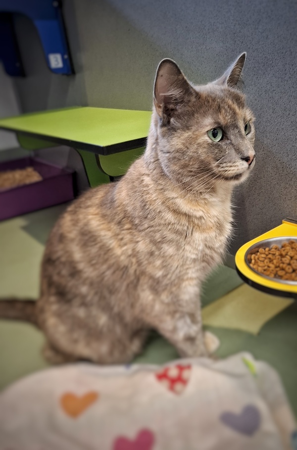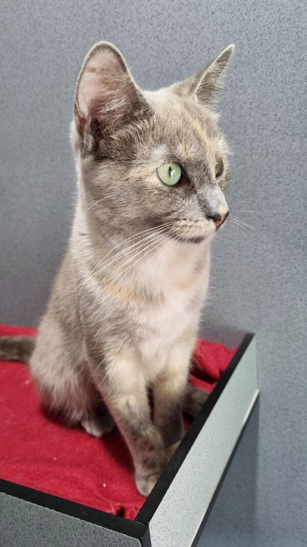 She's best suited to a fully indoor lifestyle where she can feel safe and settled. An older, quieter home would help her shine, giving her the peaceful environment she loves. Mira can live with another respectful cat, but she'll need slow, patient introductions to build trust at her own pace.
